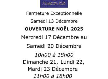 Pour votre bienvenue à la Chocolaterie Bio à Vézac, voici nos horaires d’ouverture